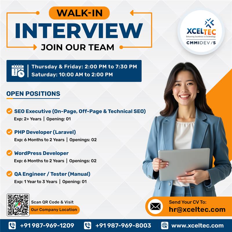 Are you seeking a better career prospect or thinking of a change in career? XcelTec is conducting a Walk-In Drive for seasoned professionals who are eager to learn and attempt new challenging opportunities.
